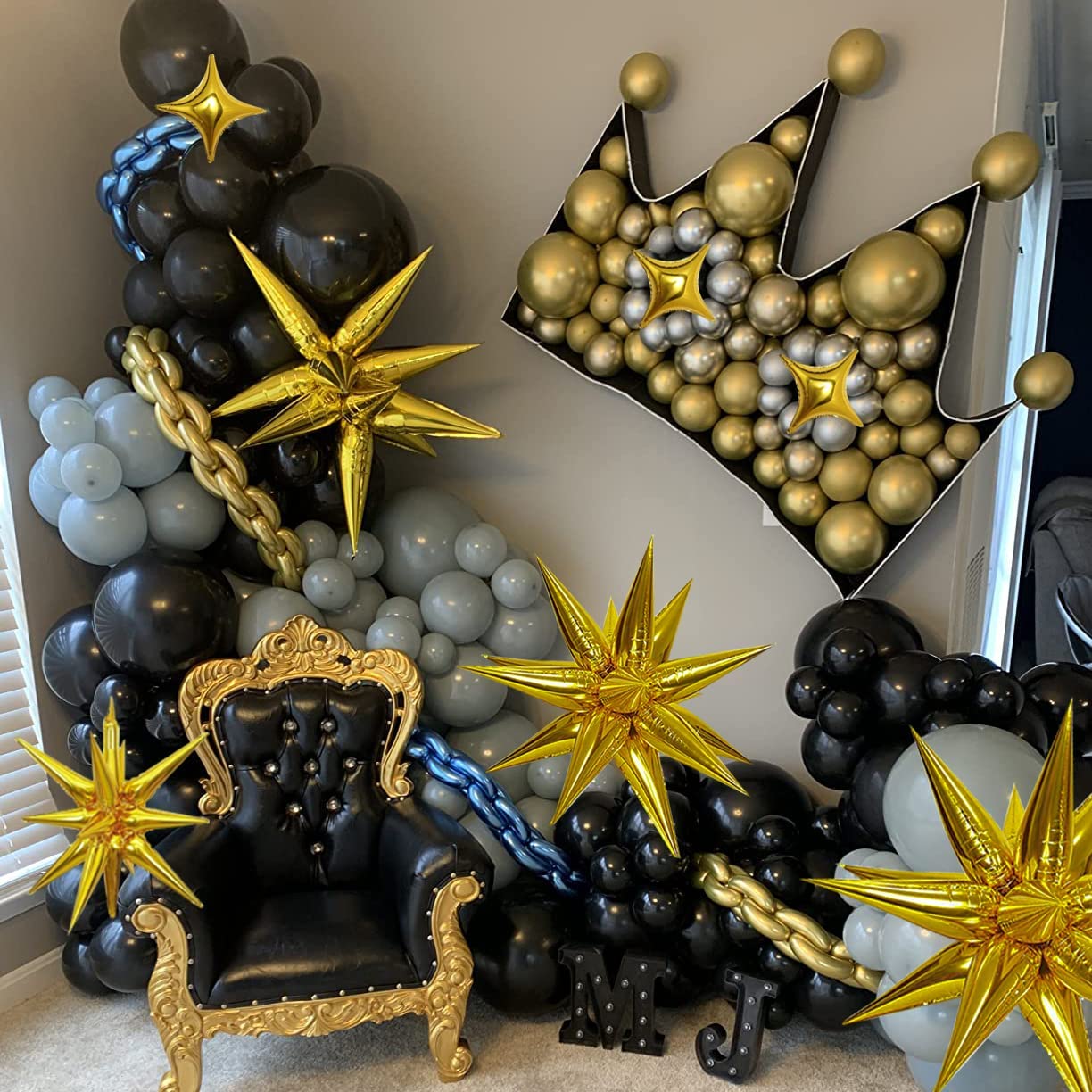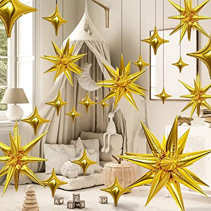 GOLD METALLIC 12 POINT STARBURST CONE BALLOONS FOIL 4POINT STAR BALLOONS FOR DIY HOME PARTY GENDER REVEAL GRADUATION CELEBRATION DINNER BIRTHDAY DECORATIONS