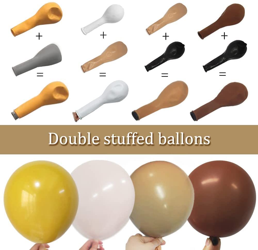 - 10pcs x 12-inch coffee brown/apricot double stuffed balloons:(black in nude balloons)