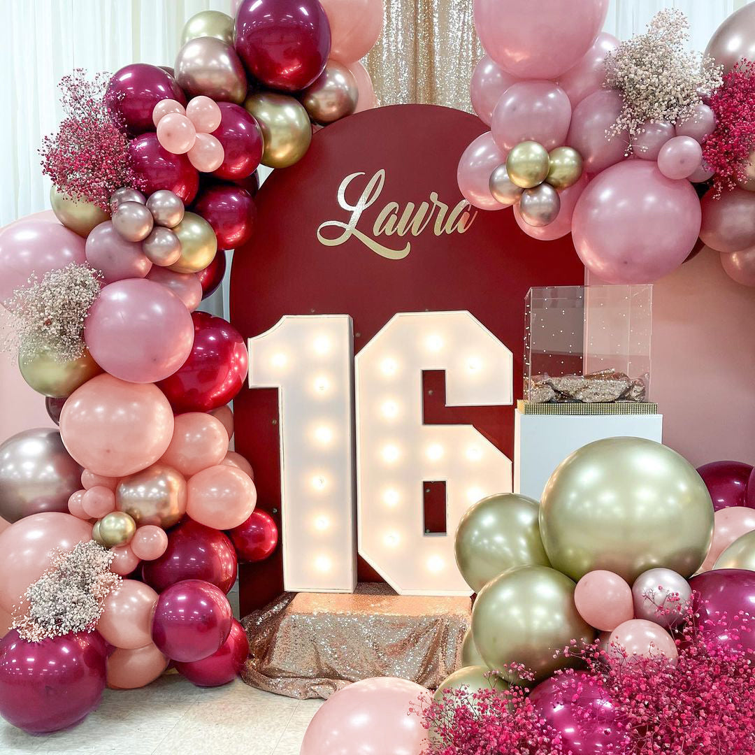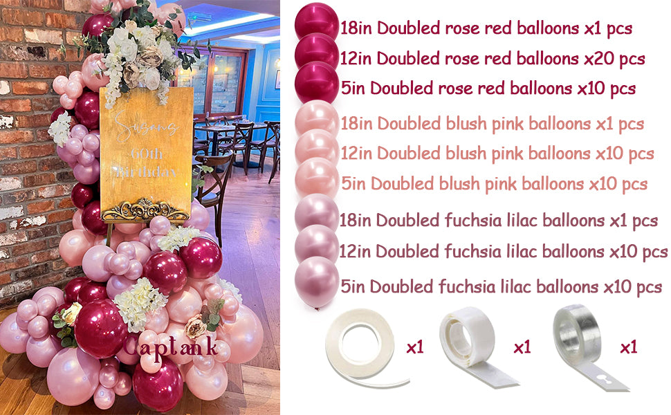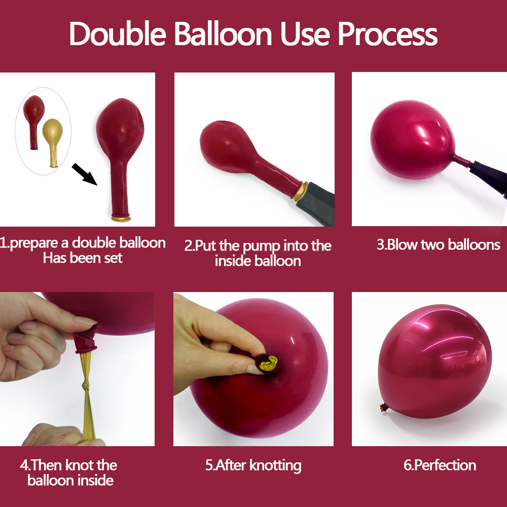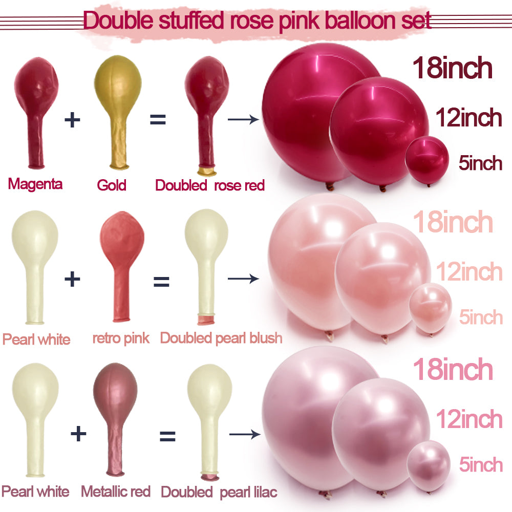 ◤12inch 20pcs double stuffed burgundy/rose red balloons (gold balloon in a megenta balloon)
