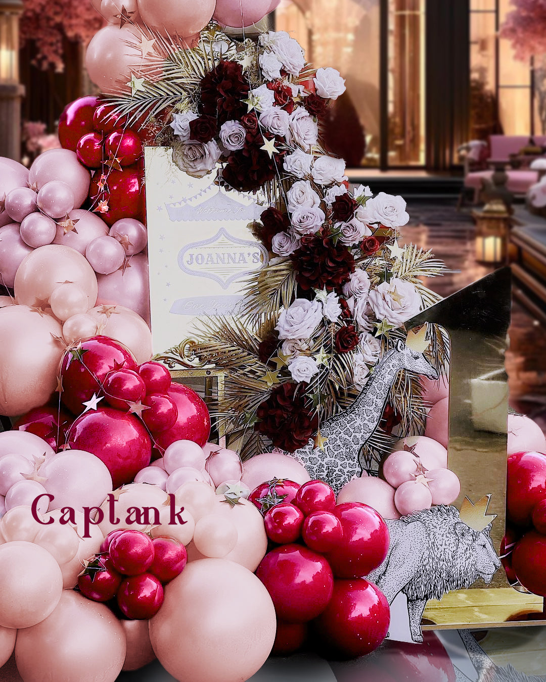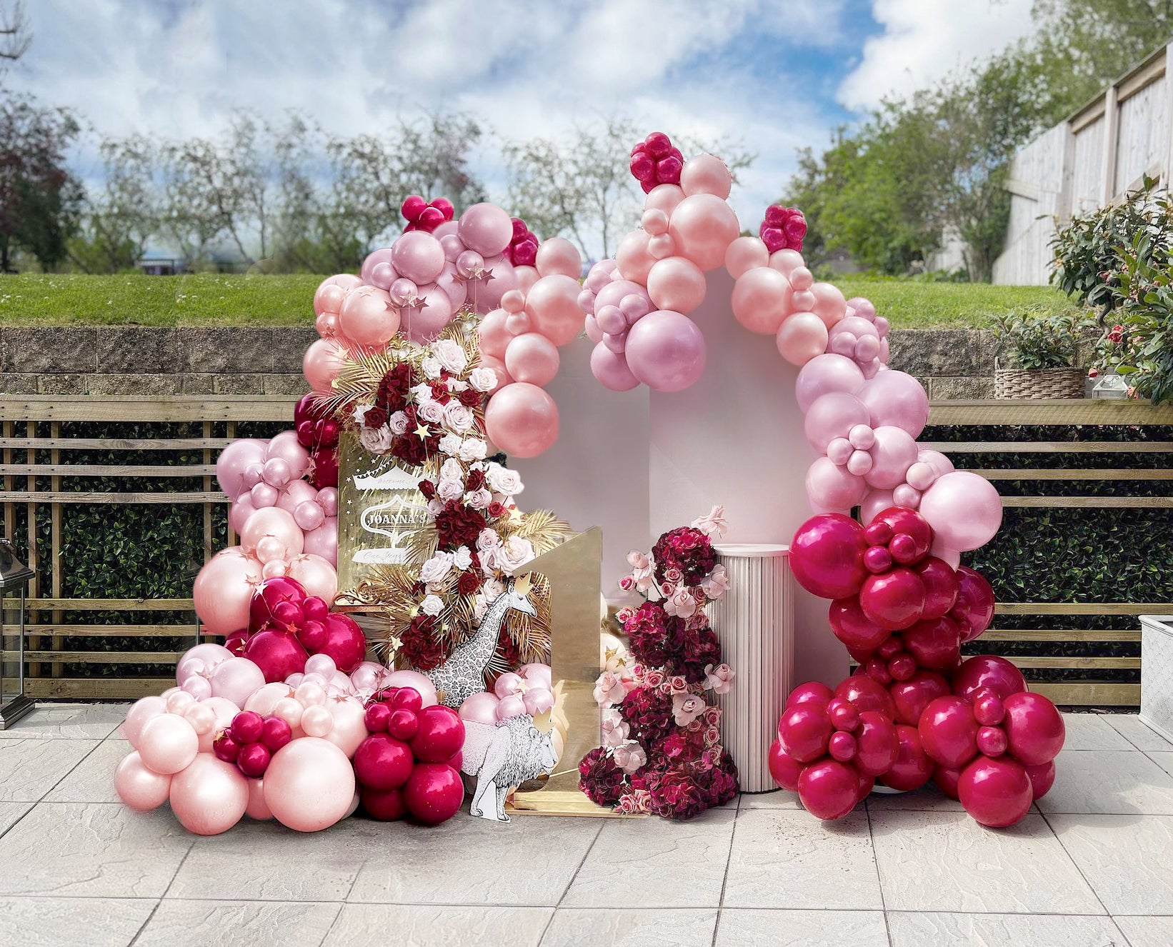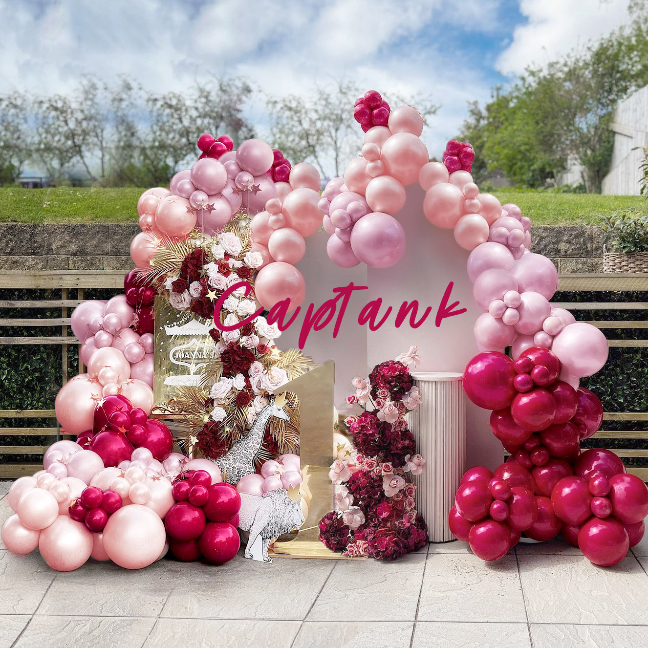 ◤12inch 20pcs double stuffed burgundy/rose red balloons (gold balloon in a megenta balloon)