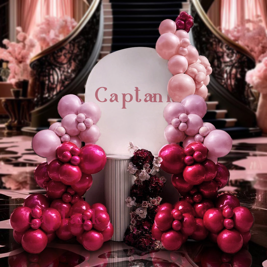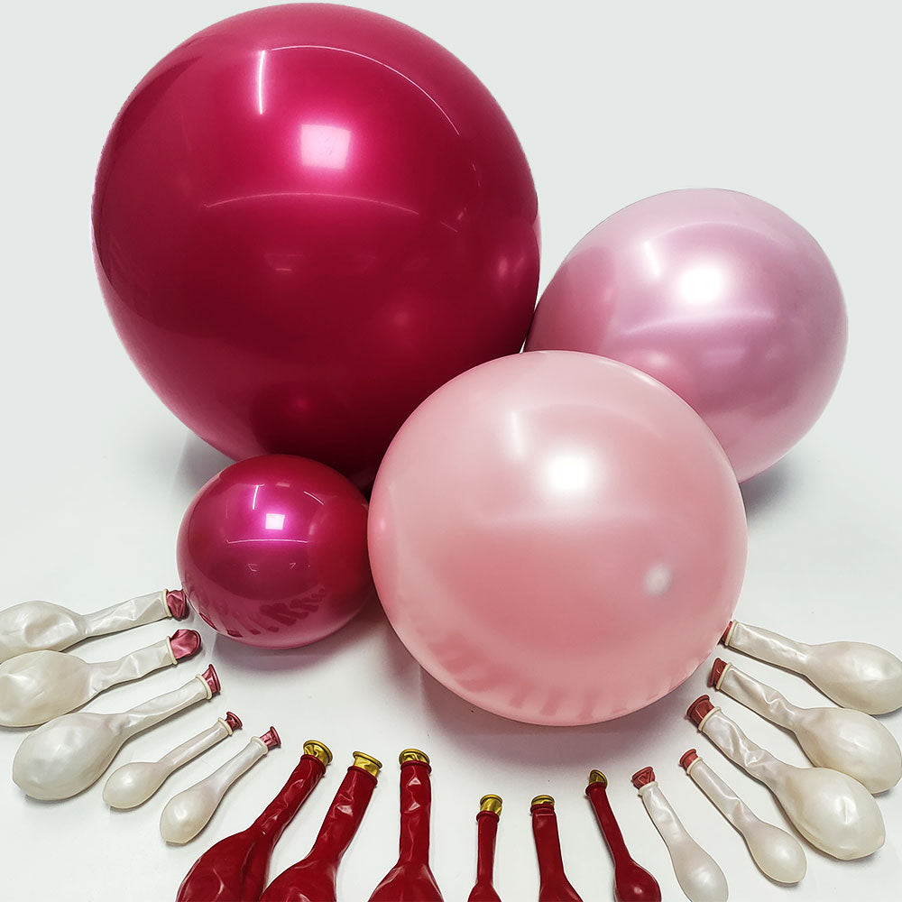 ◤12inch 10pcs double stuffed pearl megenta/fuschia balloons (metallic red balloon in a pearl white balloon)