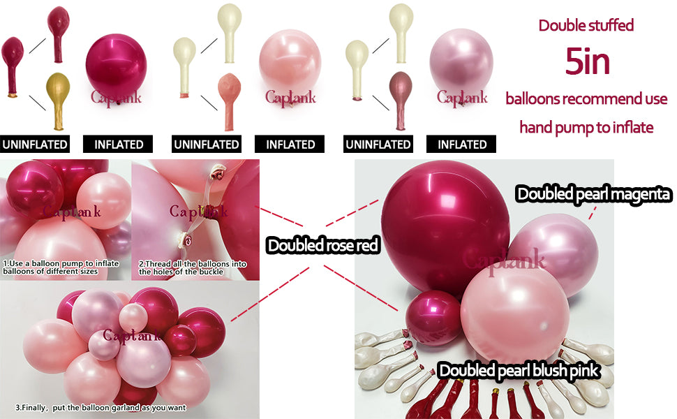 ◤5inch 10pcs double stuffed pearl megenta/fuschia balloons (metallic red balloon in a pearl white balloon)